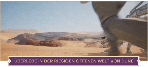ERKUNDE eine riesige offene Welt voller Schönheit und Gefahren. Gleite, klettere und durchquere Arrakis mit ikonischen Dune-Technologien wie Ornithoptern und Suspensorgürteln. Besuche die Zentren Arrakeen und Harko Village, um mit anderen Spielern zu sprechen und zu handeln.