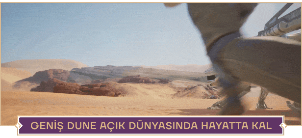Göklere çıkıp devasa Arrakis açık dünyasının haritasını çıkar. Ufkun ötesinde, Arrakeen ve Harko Köyü sosyal merkezlerinden devasa baharat püskürtüleri ve bulmanı bekleyen gömülmemiş hazinelere ev sahipliği yapan Derin Çöl tehlikelerine kadar çok daha büyük bir dünyayı keşfet.