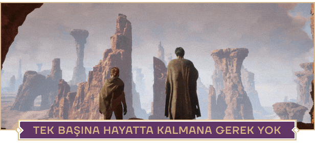 • DİĞER kazazedelerle birlik olabilir, onlarla rekabet edebilir veya tek başına oynamayı seçebilirsin. Dune: Awakening, binlerce farklı karakterin ve oyunu eş zamanlı olarak oynayan yüzlerce kişinin bulunduğu son derece sürükleyici ve uzun süreli bir çevrimiçi dünya sunar. PvP daima isteğe bağlıdır.